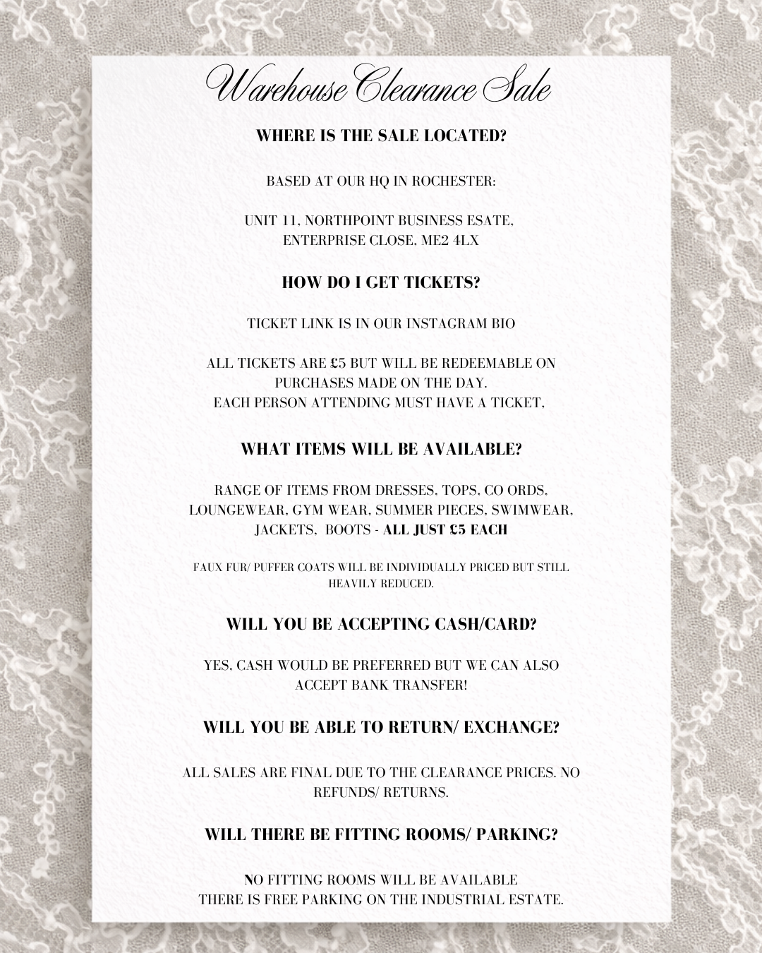 ORDER BEFORE 17TH DECEMBER 2PM (GMT)