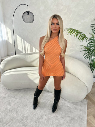 MARLA knit one shoulder cut out side mini dress ORANGE