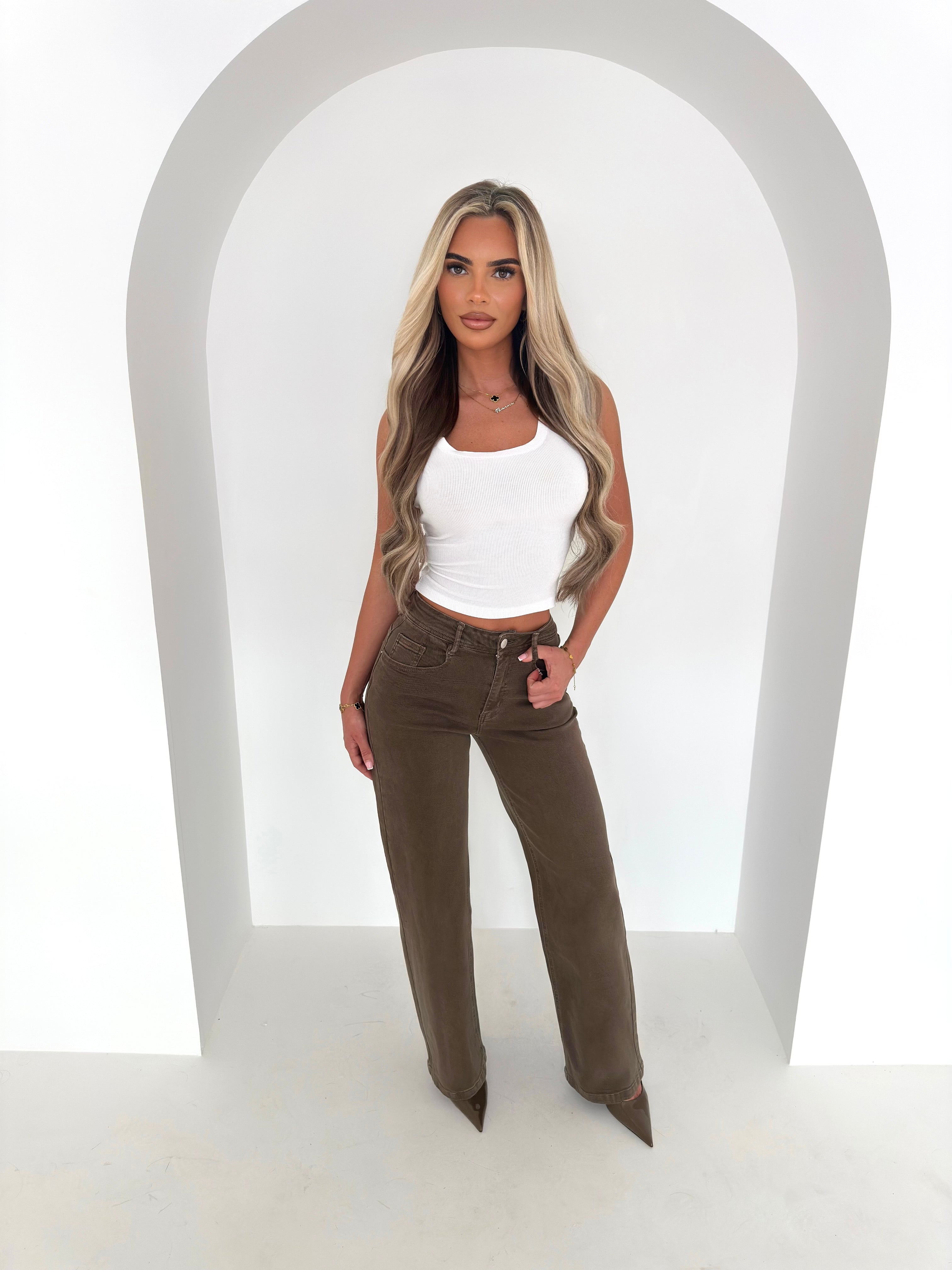 SADIE wide leg stretchy high waist jeans MID BROWN